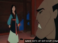 Aren't convinced about this? Think of the two different ways she battled Shan Yu. One was with a firework, which she learned to set off in her war training, and basically used more of a physical approach to defeat him momentarily. She was fitting in to what was expected of her at the time, which didn't work (spoiler, he survives). At the end of the movie, she uses the fan, something typically seen as a symbolism of passivity, to catch Shan Yu's sword and turn on him to prepare to fight. She uses both to her advantage in the same swoop, and the writers say we should too. This is emphasized even more when China bows to her, a woman, for embracing herself and saving China.