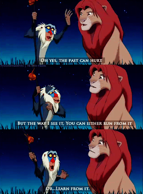 Giphy"Oh yes, the past can hurt. But the way I see it.. you can either run from it, or learn from it." - Rafiki