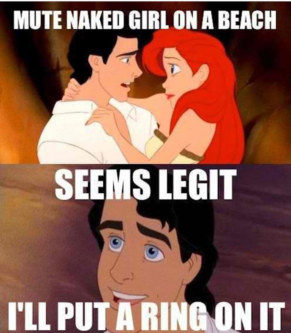 4) Prince Eric (The Little Mermaid): On top of his royal duties, Prince Eric is more of a mariner than anything else. He spends his time at sea and loves nothing more, making him the perfect match for our mermaid princess, Ariel. When a storm hits and Ariel saves Eric, he falls in love with her, but can only recognize her beautiful singing voice and not her face... What is with these guys and facial recognition? You'd think you'd remember the girl you claim to be in love with... Be able to spot her in a crowd or even face-to-face, no? I guess not. Eric, however, redeems himself with his show of bravery when he and Ariel team up to kill Ursula (in a pretty bad-ass way, might I add). The good: he's good with his hands, he loves nature, and he can rock a v-neck. The bad: he almost married Vanessa (Ursula in disguise) because she had Ariel's voice... He isn't of the soundest mind, is he? The "eh": he might leave Ariel for the next girl that can sing a lil' ditty. Tip for Ariel: don't bring him to karaoke nights. Male-o-meter: 6/10