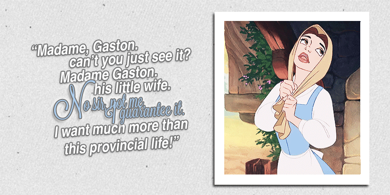 Do- Speak up for what you believe in and stand your ground. Now that you're older there are so many opportunities to speak your mind, debates, forums, peaceful protests. Just like Belle stood up to the entire town about the goodness of the beast you have to stand up for what you believe in as well