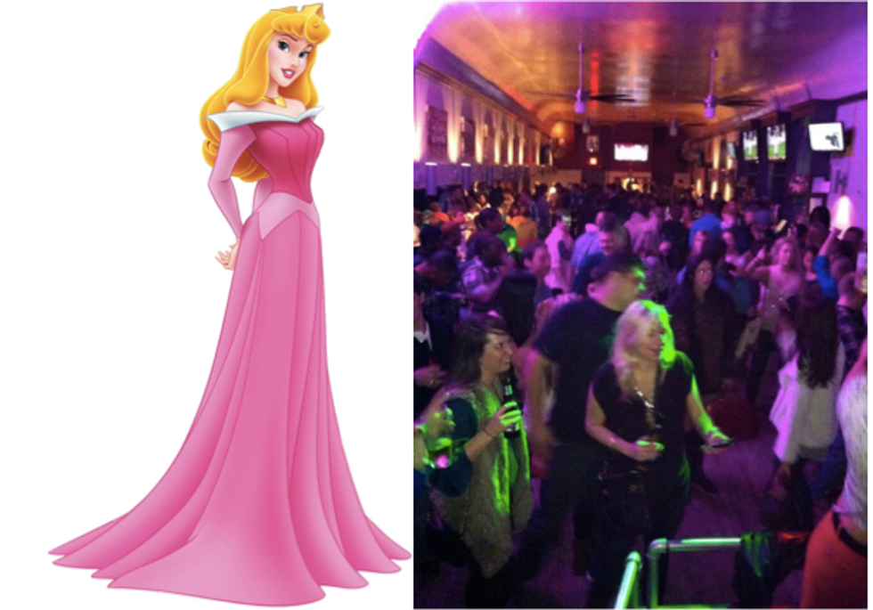 Where do you find Aurora every Monday and Wednesday? At the Silver Dollar, duh. The Dollar is the absolute perfect place for Aurora because it's a dark enough hole for her to hide from Maleficent and her parents (since she's not supposed to leave the tower ya know??). A night at the Dollar for Aurora almost always results in her blacking out and probably fall asleep on the bar, which is normal protocol at the Dollar.