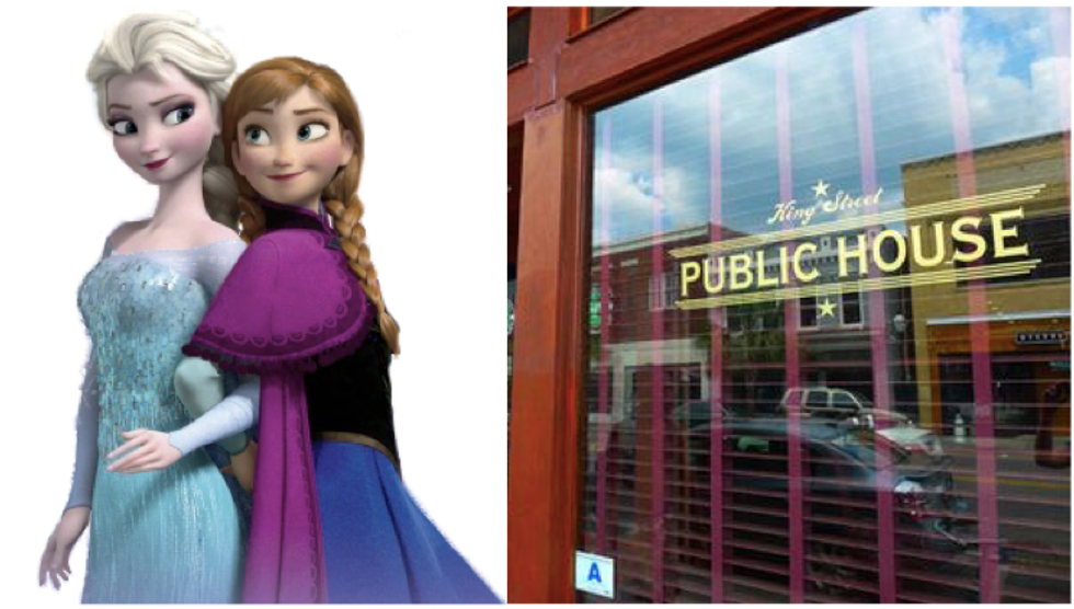 When Elsa and Anna go out downtown together, they go to Public House (RIP O'Malley's). This is the go-to place for the Frozen duo, because Anna has no problem getting in with her fake. Meanwhile, Anna also has the comfort of knowing her sister, Elsa, has her back when it comes to all those under-covers too.