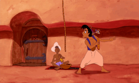 Being chased through the market and running all over town. Let's see if Aladdin can give Usain Bolt a run for his money.