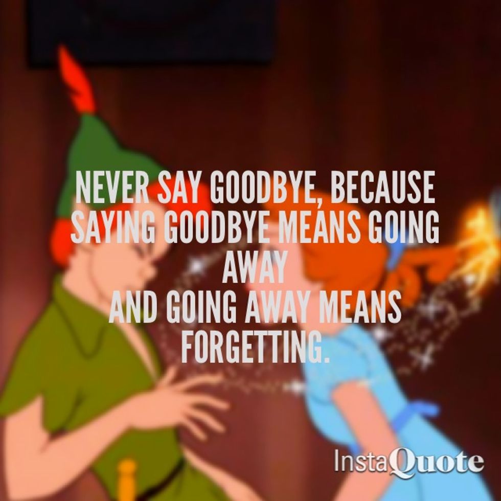 31. “Never say goodbye, because saying goodbye means going away and going away means forgetting it.” –Peter Pan32. “I will fly, chase the wind, and touch the sky.” –Brave