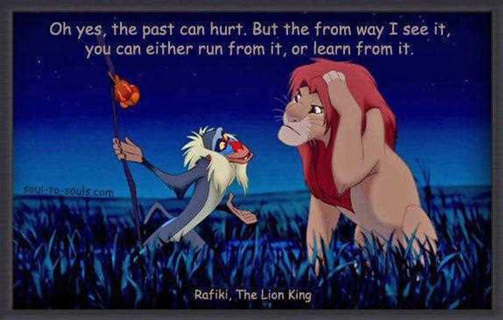 2. "Oh, yes, the past can hurt. But the way I see it, you can either run from it, or you can learn from it." - The Lion King