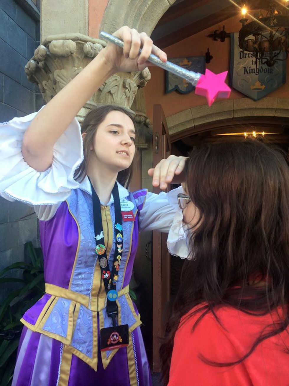 Something to keep in mind on your next trip is all of the smaller opportunities Disney holds. The parks aren't all about rides, characters, and shows; sometimes the best moments can be found sitting on the grass of the hub in Magic Kingdom or finding hidden Mickeys. Some personal favorites of mine are taking pictures at the casting door on Main Street U.S.A., people watching around the World Showcase Lagoon, finding the hidden Pascals in the Tangled bathroom area of Fantasyland, and talking to cast members about where they're from and how they came to work at Disney. I can go on the rides any time I go to Disney and I will obviously enjoy them, but I love making unique memories every chance I can get. If you're ever in the Chapeau on Main Street U.S.A. in Disney World, pick up the old timey phone on the wall and listen; it's one of my favorite little discoveries from my program. Sometimes the smallest memories are what stick with you when the pixie dust has washed out of your hair. Speaking of that, make sure you get some pixie dust at the Bibbidi Bobbidi Boutique.