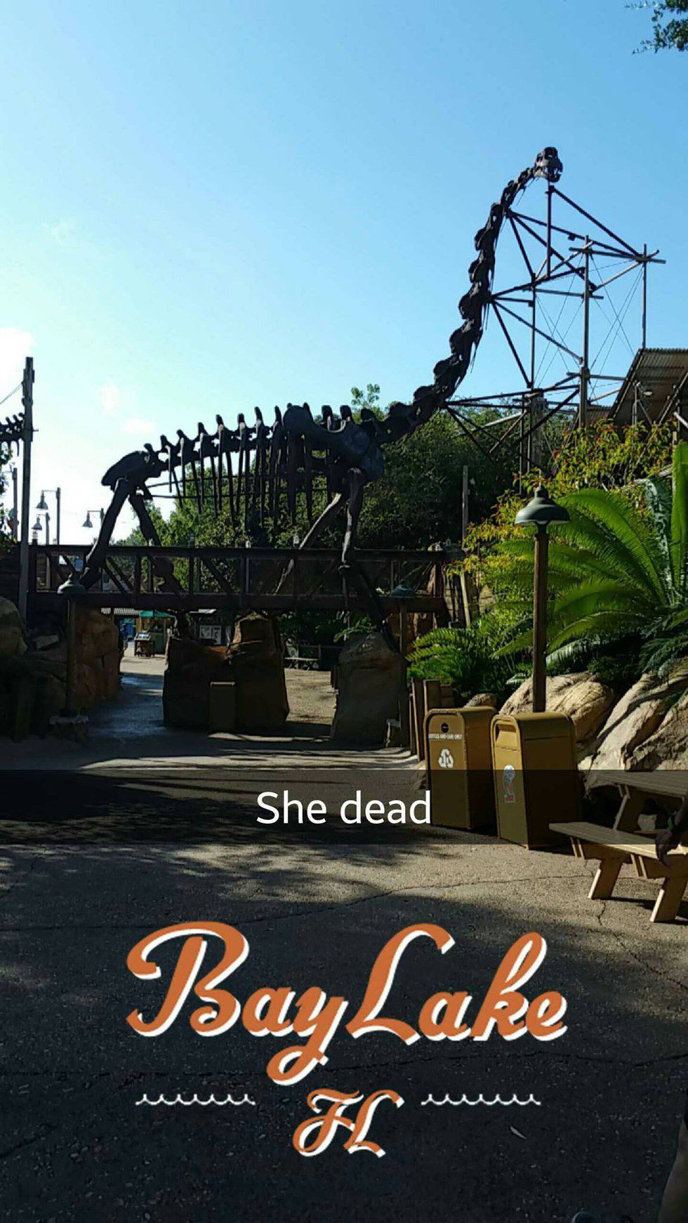Next, I walked towards Dino Land. Because I am so hilarious, I wrote my own caption on this Snapchat picture.