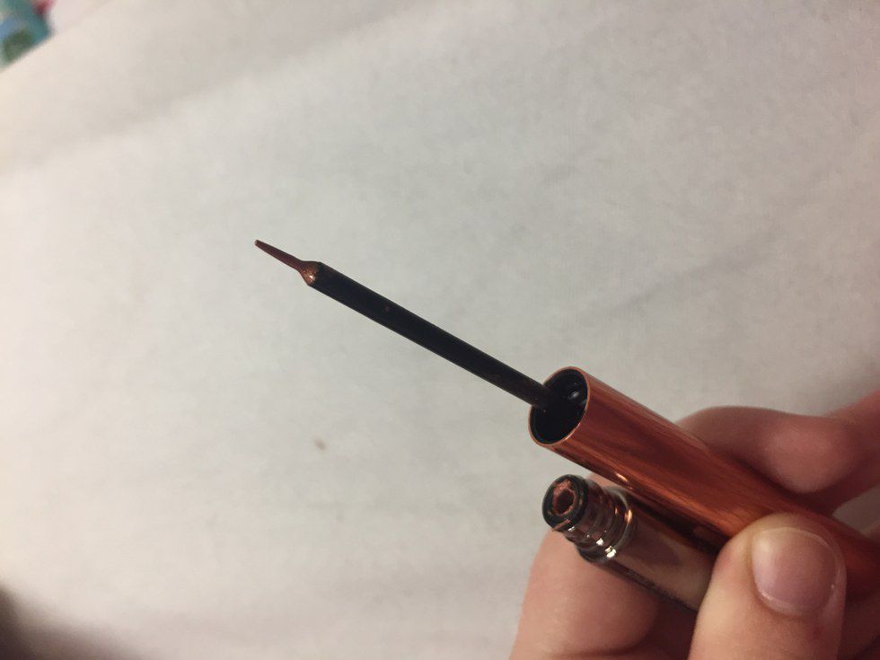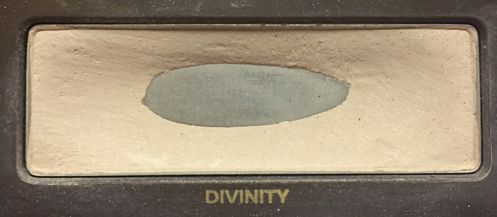 To start on the magic feather, line the upper lashline with a black eyeliner (the thinner the point, the better) and bring it to a small flick in the outer corner of the eye. Map out a dramatic wing extending from the line - curved, not straight like you would with a regular cat eye - and use short strokes on either side of the wing to fill in the feather design. Draw a short point out from the center line. Highlight the inner corner with a sheer silver shadow on a small brush, then highlight the browbone with a nude matte shade.