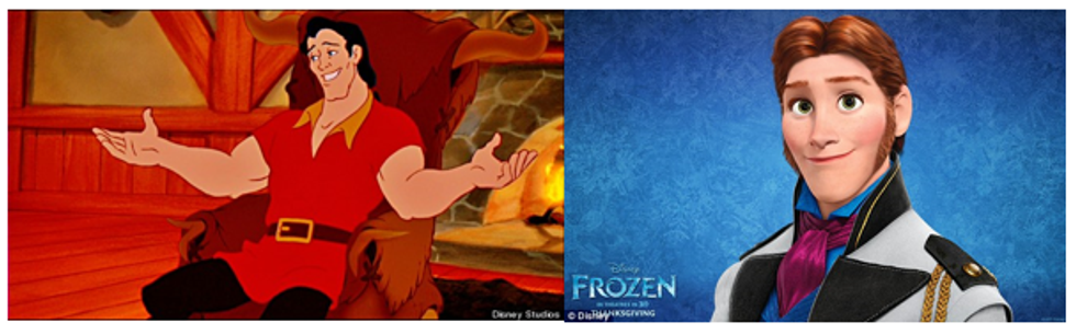 Handsome Men: Gaston (jerk and attempted murderer) and Prince Hans (jerk and attempted murderer).