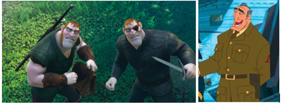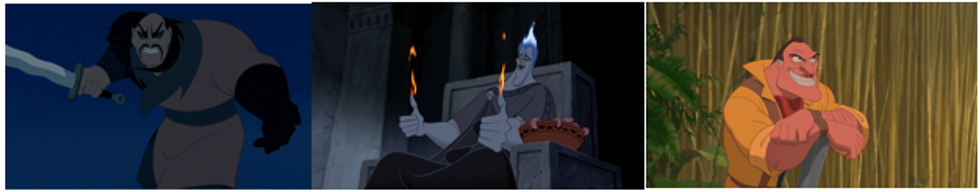 Ugly + Buff Men: Shan Yu (murderer), Hades (conman and attempted murderer), Clayton (animal abuser), the Stabbington Brothers (thieves and attempted murderers) and Commander Rourke (thief and murderer).