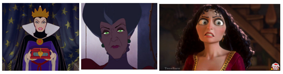 Beautiful Women: Evil Queen (attempted murderer), Evil Stepmother/Lady Tremaine (child abuser), Mother Gothel (child abuser), Maleficent (attempted murderer) and Queen Narissa (attempted murderer).