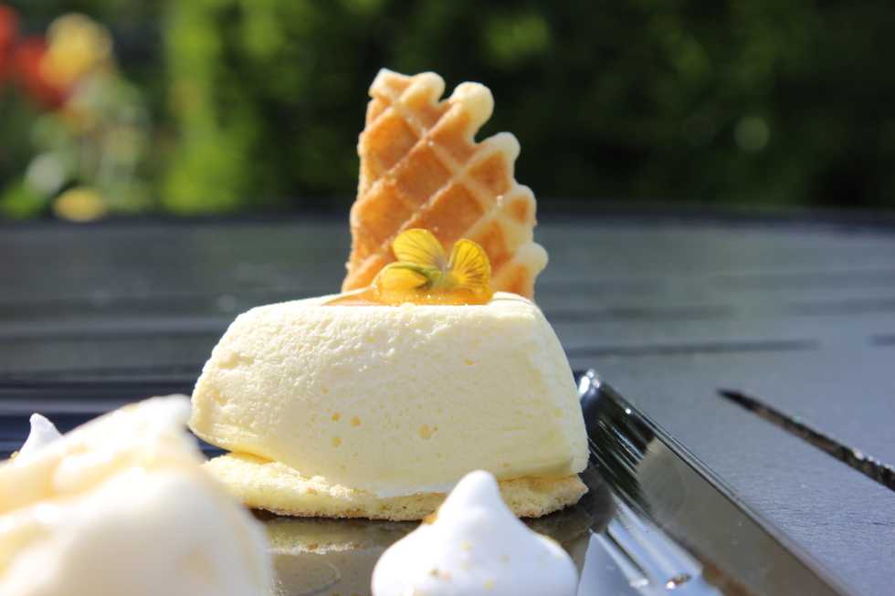 We decided to try the Local Wildflower Honey-Mascarpone Cheesecake with Orange Blossom Honey Ice Cream garnished with Fennel Pollen Meringue Kisses. And oh my gosh, was it cute? Yes. Was it delicious? Absolutely. We could not bee-lieve the sweetness of the edible glitter and honey ice cream. The cheesecake itself was airy with small hints of honey and paired well with the thicker ice cream.