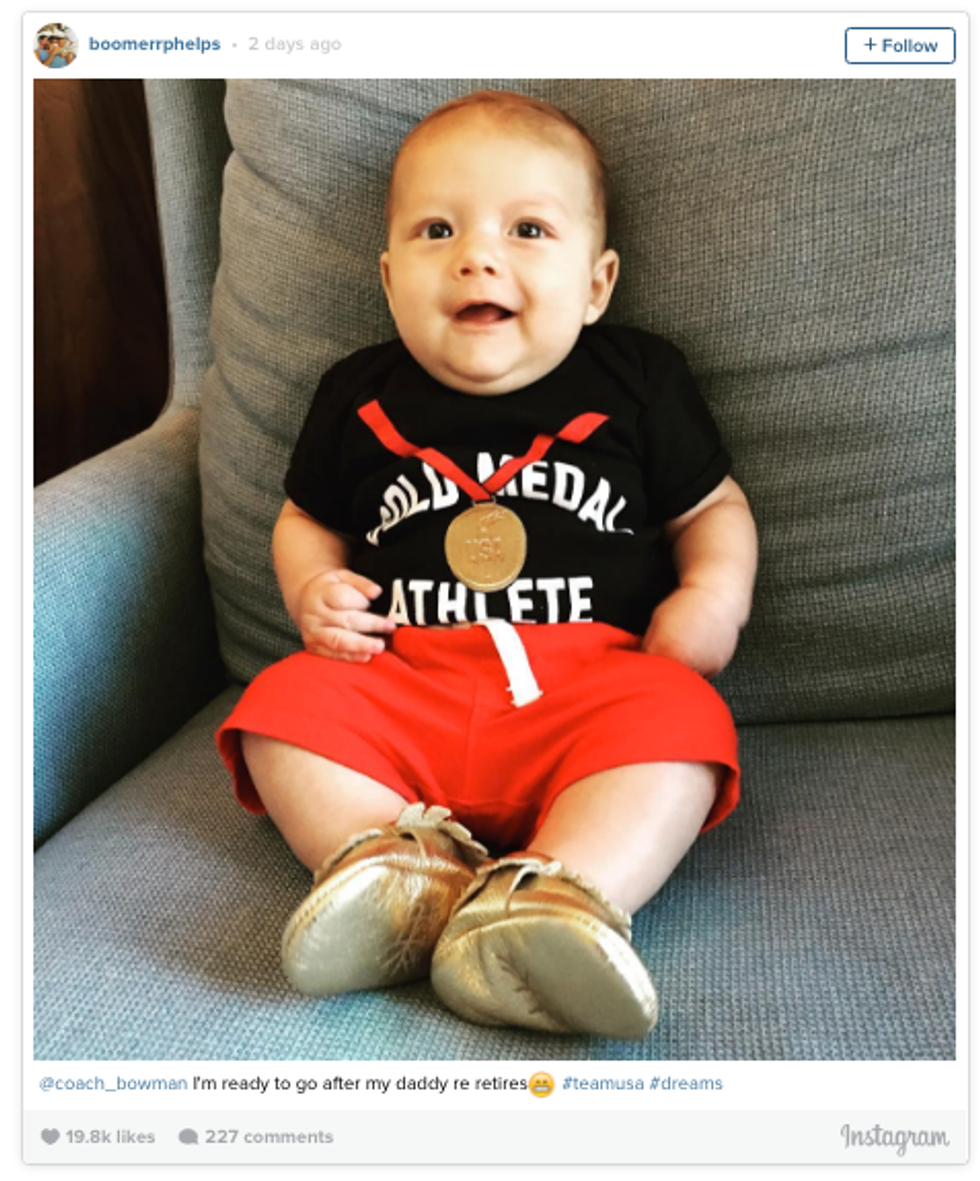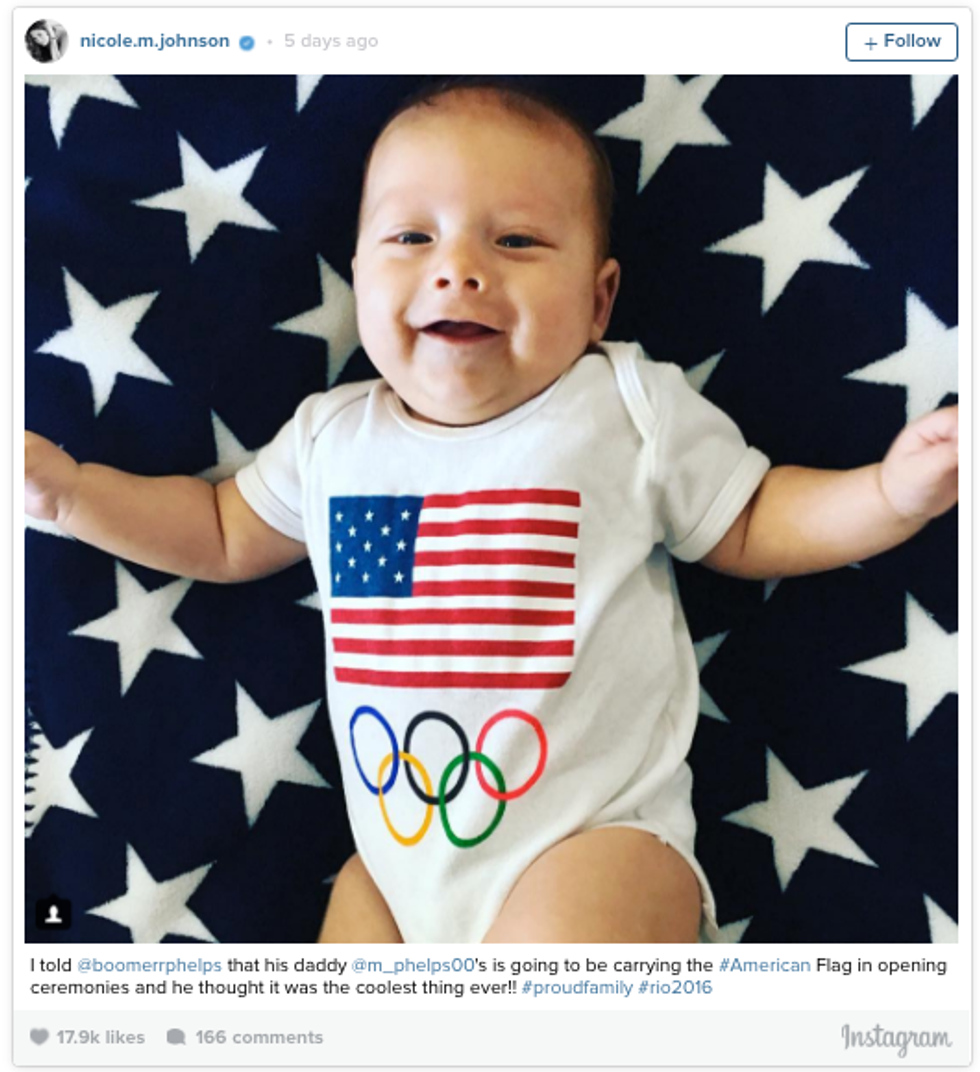 Thanks to mommy Nicole Johnson (the luckiest girl on Earth) we get to see all of Boomer's adorable Olympic outfits.