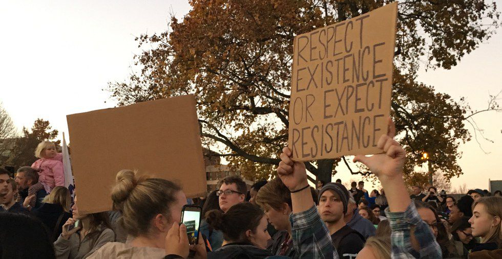 To those who believe that these rallies and protests are doing nothing, you're wrong. No, protesting won't reverse what happened on election night, but it will unite people without compromising anyone's morality. It will allow those opposed to this presidency come together without being forced to back someone they can't agree with.