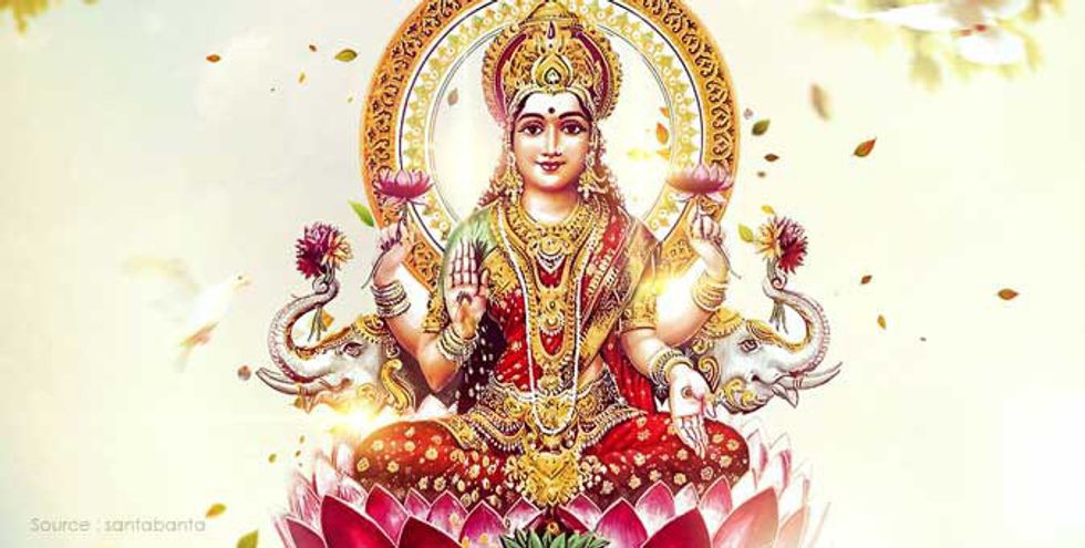 On the third day of Diwali, people perform the Lakshmi puja (prayer) to honor Lakshmi, the goddess of wealth and prosperity.