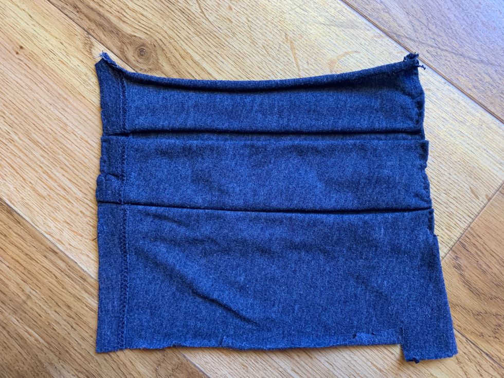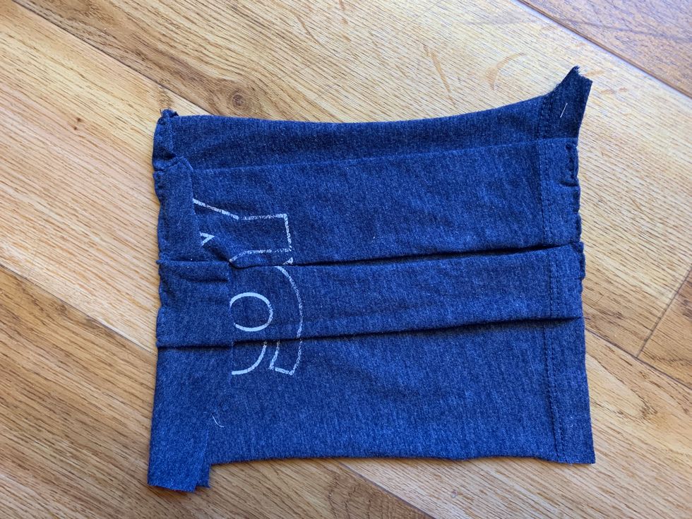 The first thing I did was cut one of my shirts I didn't want anymore into a long rectangle with a width that would be unique to my (small) face.