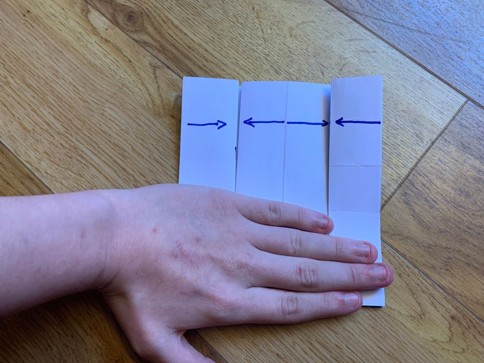 On the pattern above, the folds with the Xs on them mean they will not be folded, the "under arrow" folds will be the folds directly under the arrows, and the arrows are going to be put together like this.