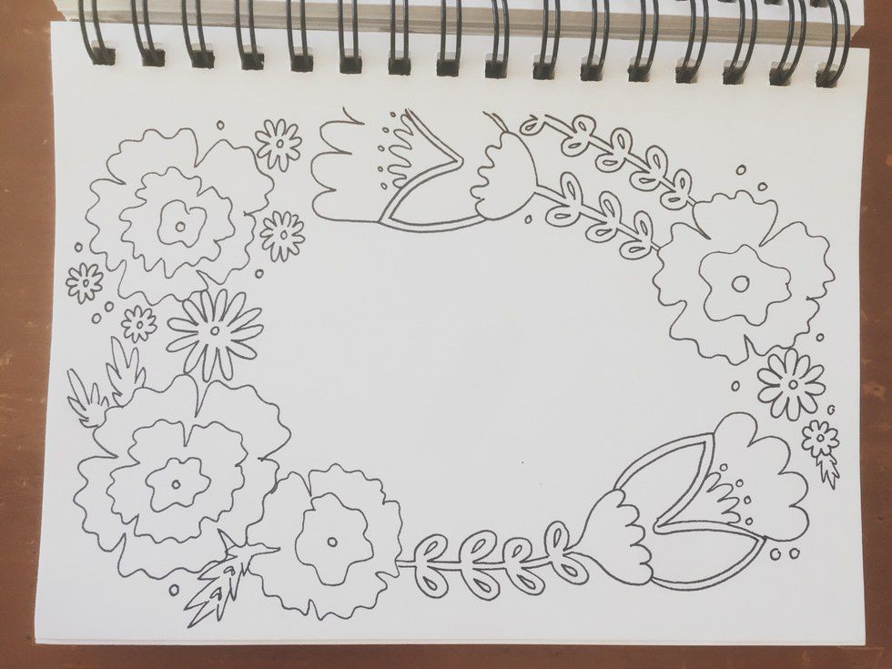 Floral wreaths are everywhere right now- varying in shapes, sizes, designs and colors. They can spice up an envelope, the front of your notebook or be framed as an original piece of art. They are perfect for spring fever and a reminder than warmer weather is coming, hopefully sooner than later!