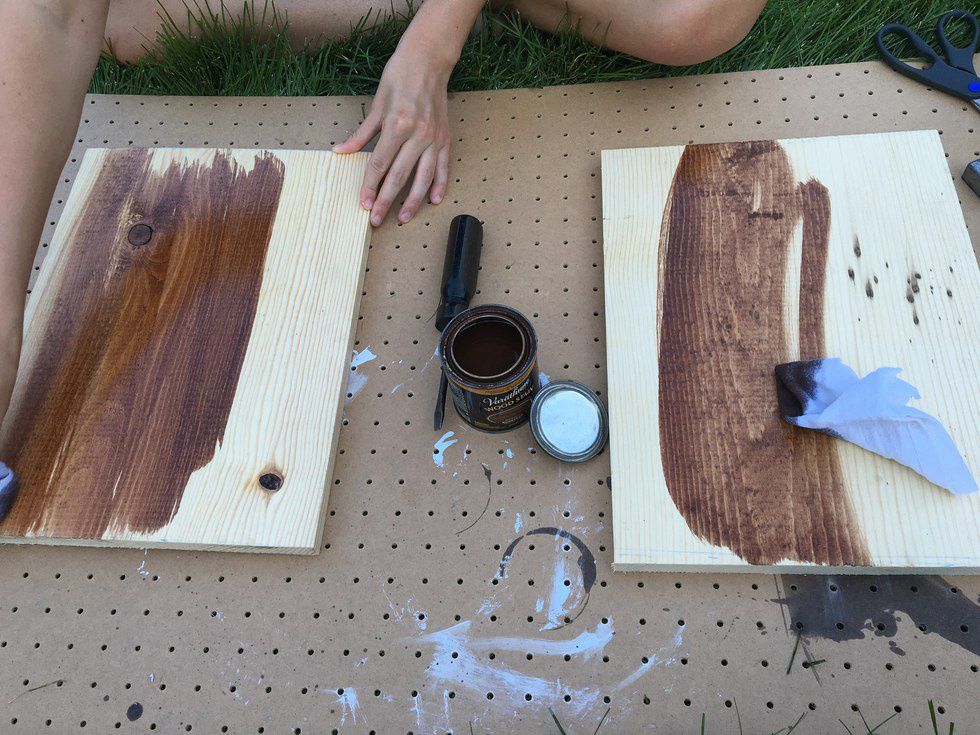 I got the pieces of wood at Menards in the scraps section, it doesn't matter what kind of wood it is. Just make sure it is light so you don't have an issue hanging it on a wall. It is also up to you on how small or how large you want this to be.