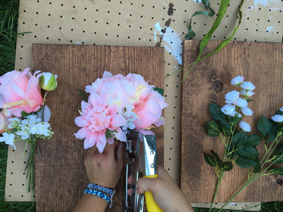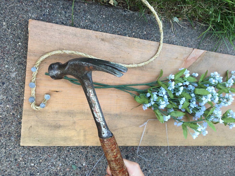 You need a hammer to hammer the nails. I also found it easy to use a staple gun to staple the flowers in place so you can't see them stapled down.