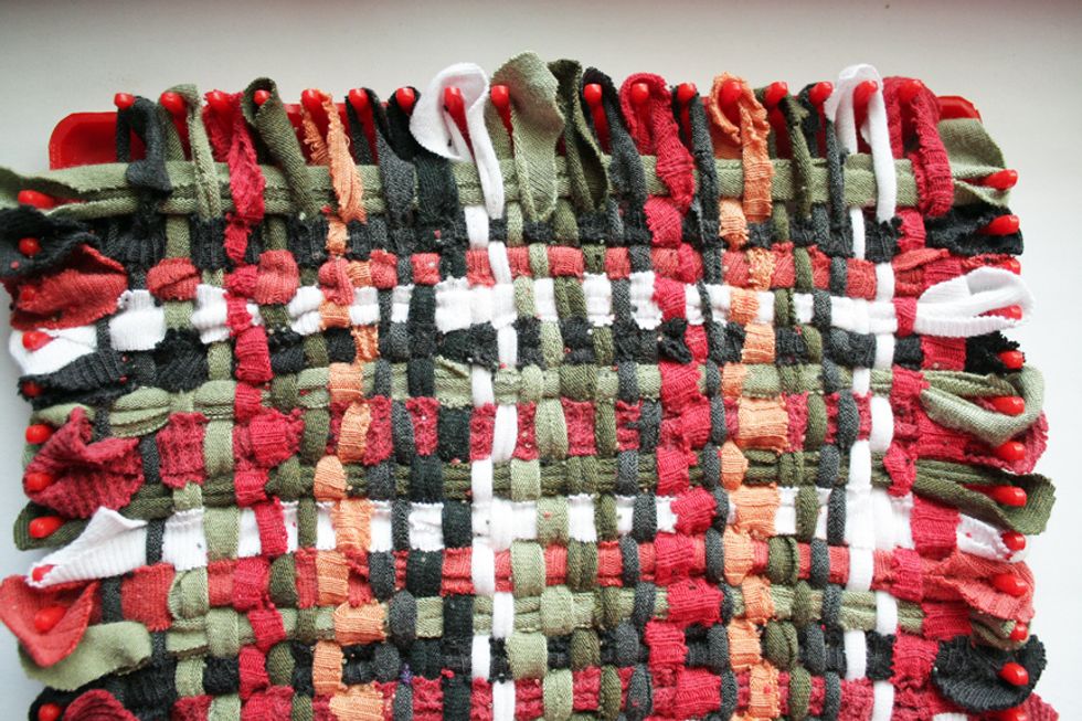 You will need: t-shirts or other stretchy fabric, potholder loom