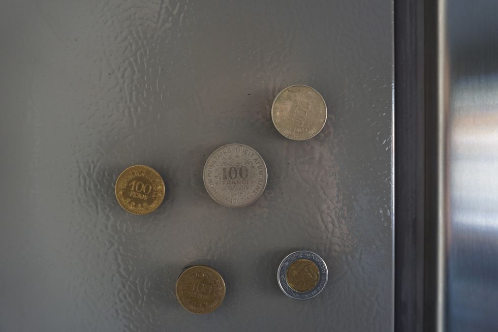 I glue super magnets to the back of random coins I keep from my travels. This is a quick project and very affordable. You can use coins or get creative with seashells, rocks, buttons, or other items.
