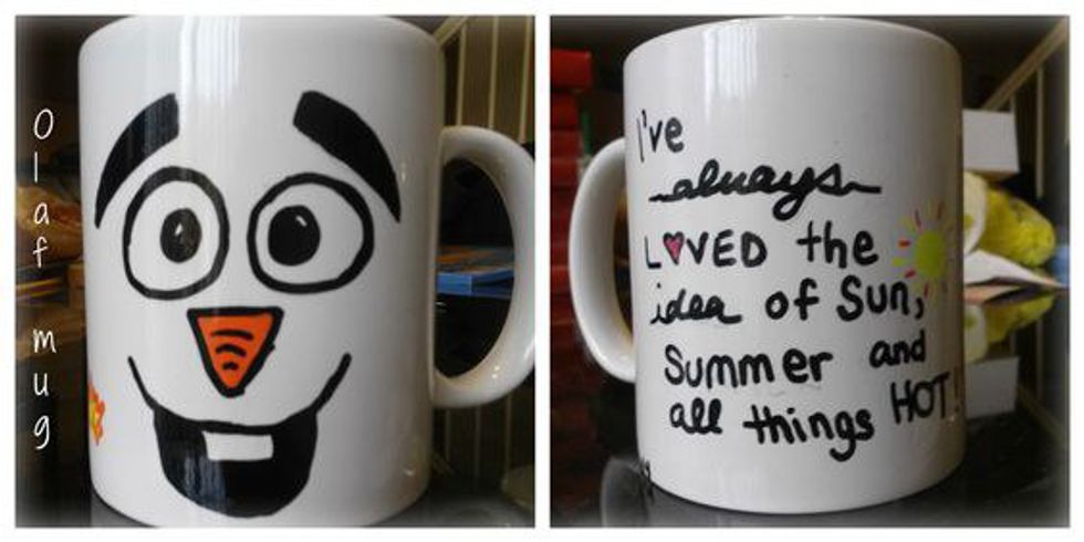 This gift is super easy to make and costs practically nothing. I bought the mug for less than a dollar at my local thrift store and I took paint markers (better than Sharpies) and drew on the design. Once completed, I put the mug in the oven at 350 degrees for 30 minutes. This helps the ink stay on the mug when it is washed.