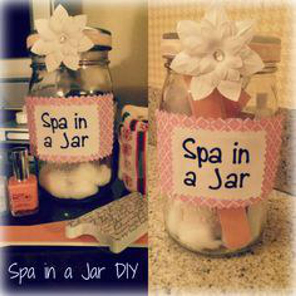 This gift is perfect for a Secret Santa gift or a stocking stuffer! I bought the mason jar from a craft store and filled it with nail polish, fuzzy socks, nail file, cotton balls, and all of the stuff you need to have a mini-spa session. All of the products were purchased at a dollar store or from Target.