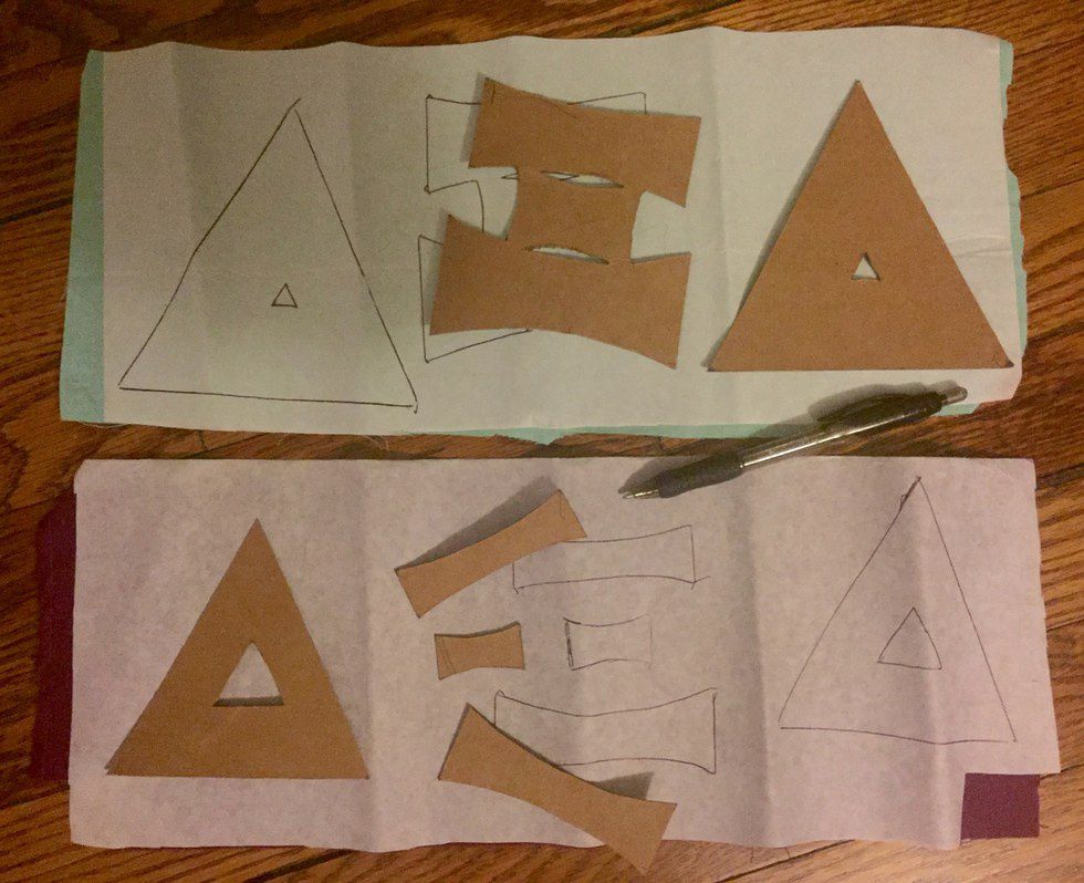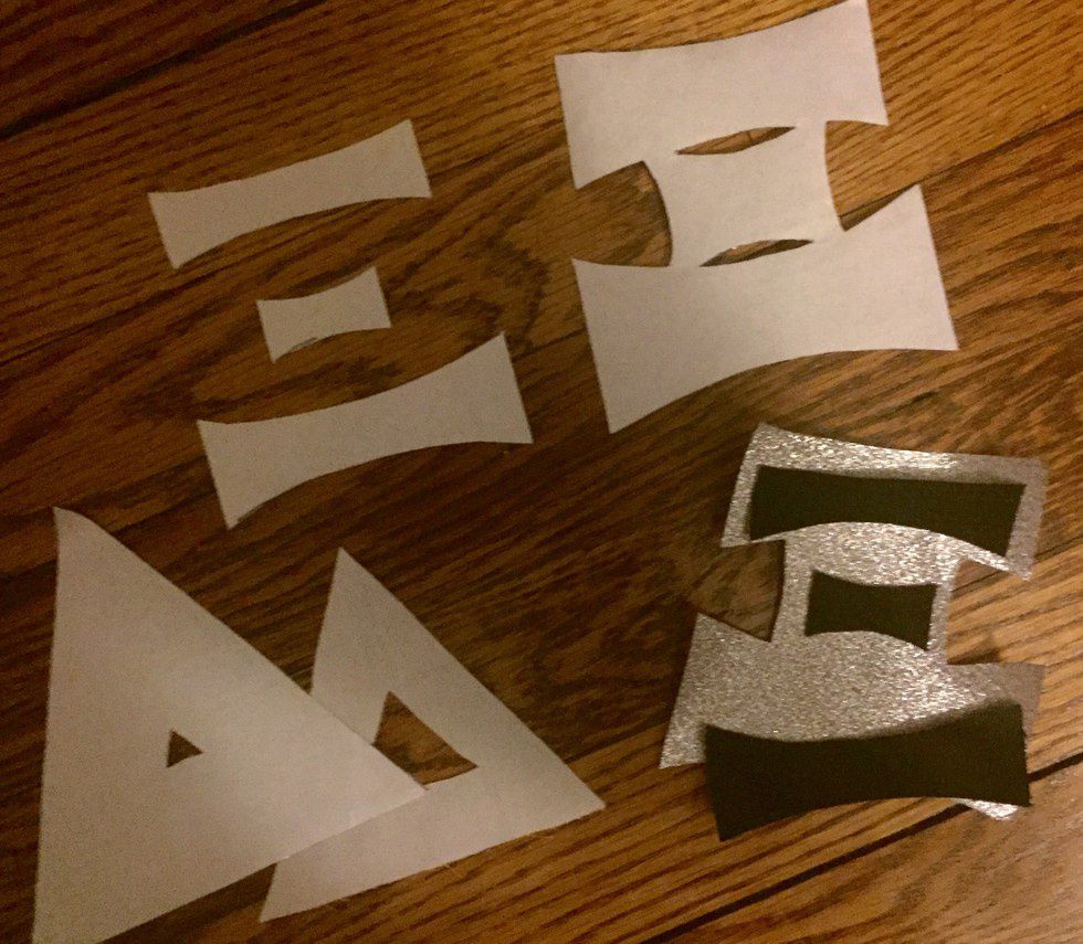 Stencils Print out letters from online to the size of your choice (I'd say 4 inches is a pretty good size). Then cut out the letters and trace them onto card stock paper. You will need two stencil of each letter, one slightly smaller/larger than the other in order to make an outside border for your letters.