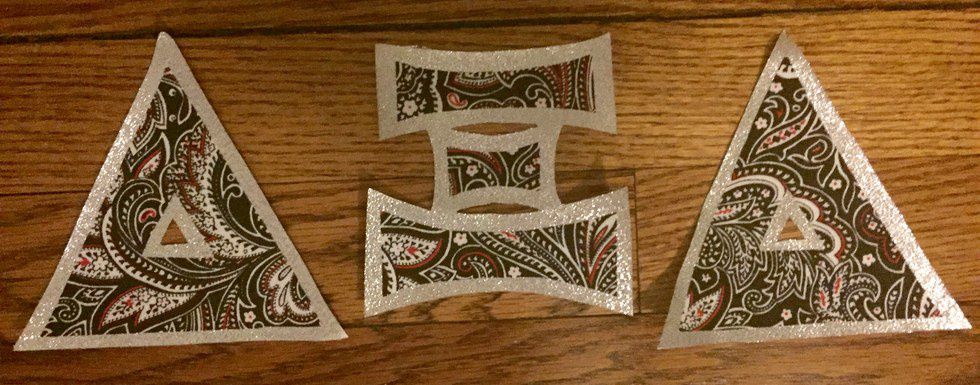 Once you've chosen the two fabric's you will be using it is time to break out the iron. Iron out your pieces of fabric so that there are no creases or wrinkles. Then, cut a piece of Wonder Under to match the size of your fabric (it should be enough to make the amount of letters you need). Iron the rough side of the Wonder Under onto the back side of your fabric. You should now have a non-flimsy sheet of fabric ironed to the Wonder Under. Do this twice with both sheets of fabric that you are using.