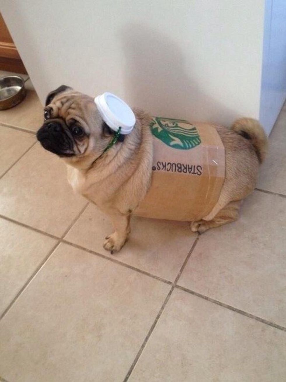 Pugs are one of the cutest dog breeds and they look good in any kind of costume. First they steal your heart, and then they are pugin you out of your Starbucks.