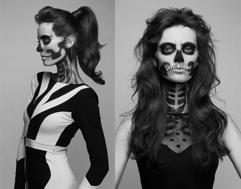 This one requires you get pretty fancy with makeup. Use liquid liner and black eyeshadow to create crisp lines on your face. This look is super dramatic and would only require you to wear black clothing with it.