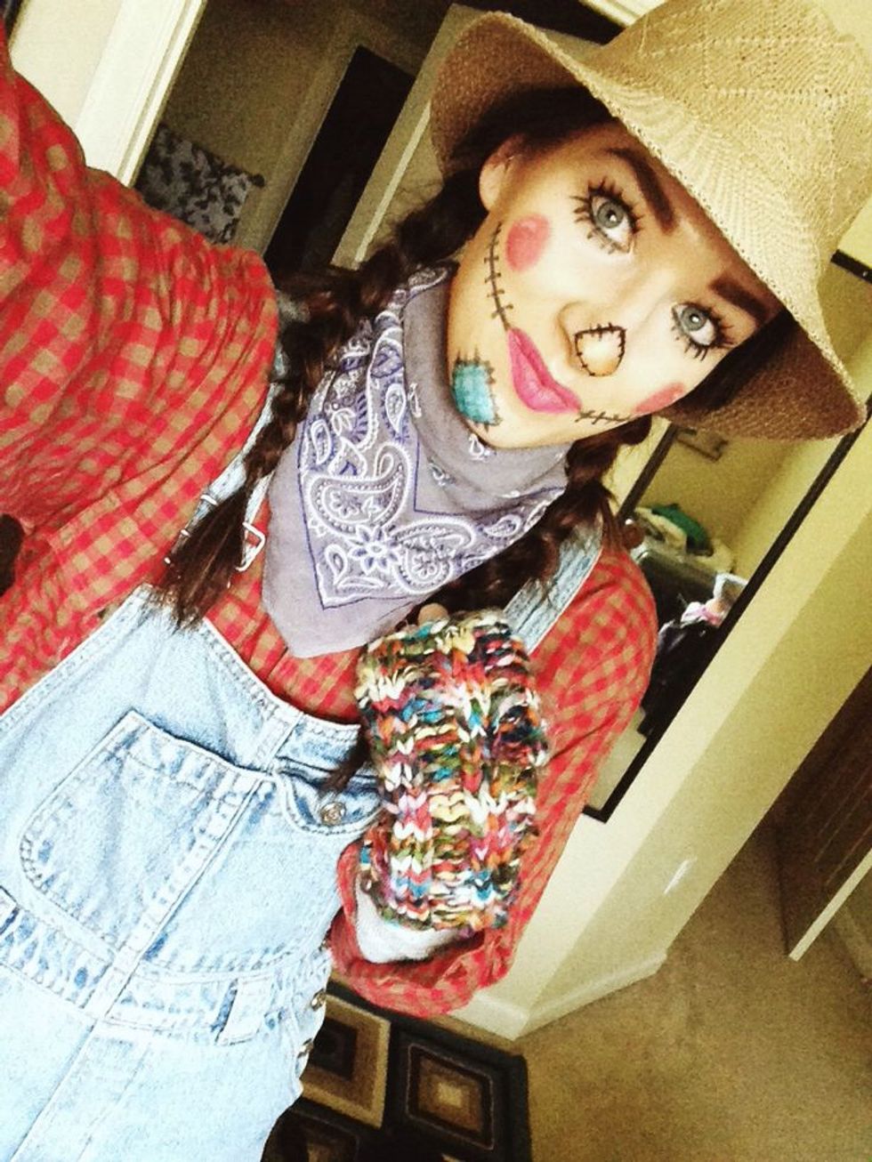 A Halloween classic. All you need for this costume is a pair of overalls, some plaid, a hat, a bandana and eye makeup to create the patch-work look. Since this costume is pretty gender-neutral and generic, anyone would look great wearing it!!
