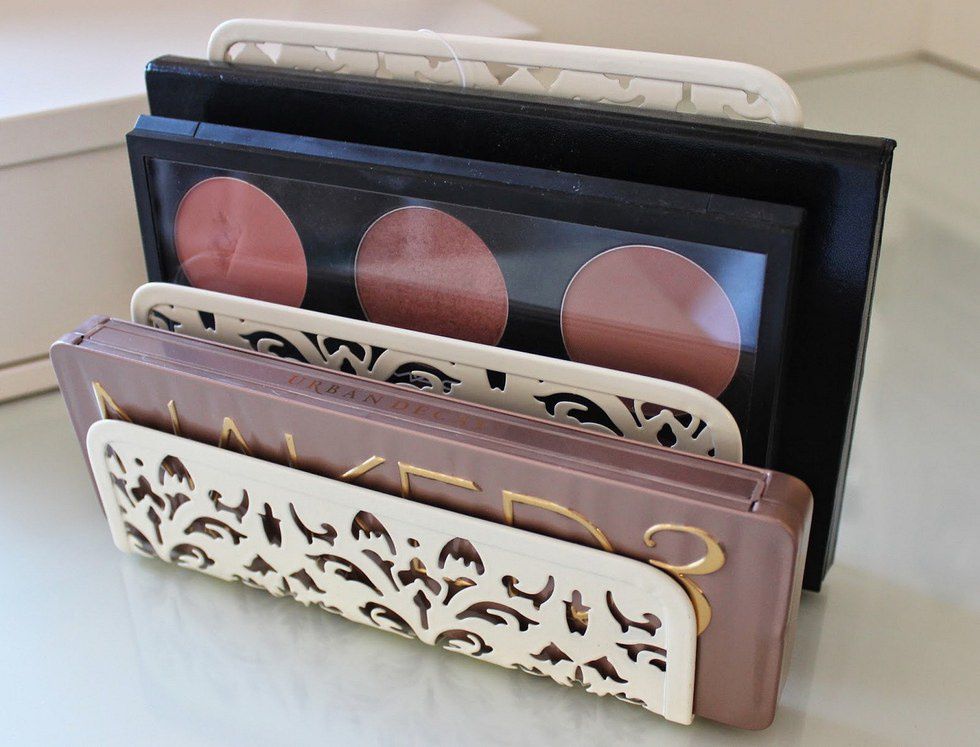 This DIY, just like the shoe organizer one, is as easy as purchasing something and using it for a different purpose. Buying something like a letter holder is a great way to store your eye shadow palettes that lay stacked up on your bureau or vanity.