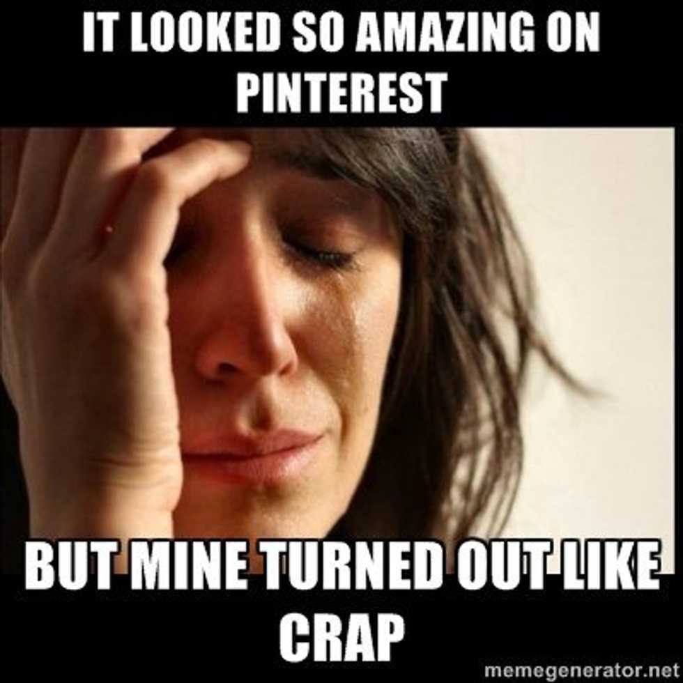 Are you planning a holiday party and need inspiration for appetizers or holiday themed cookies? If so, you are most likely going to search on Pinterest for inspiration. It is no secret that Pinterest has exponentially increased the number of those who attempt DIY projects. Simply pinning a picture or article to your board makes you feel more crafty. In theory, these DIY projects are quick and easy, and provide awesome results. However, many find far too often that their version looks nothing like the picture. In fact, Pinterest ought to put the disclosure "results may vary" somewhere on their website to forewarn inexperienced crafters. Though these projects result in frustration and in some cases tears, the results are just so bad that they are good. Please know you are not alone when your results are not up to par. To make you feel better about your results, or lack thereof, here are a few people who "nailed" the results of their DIY attempts: