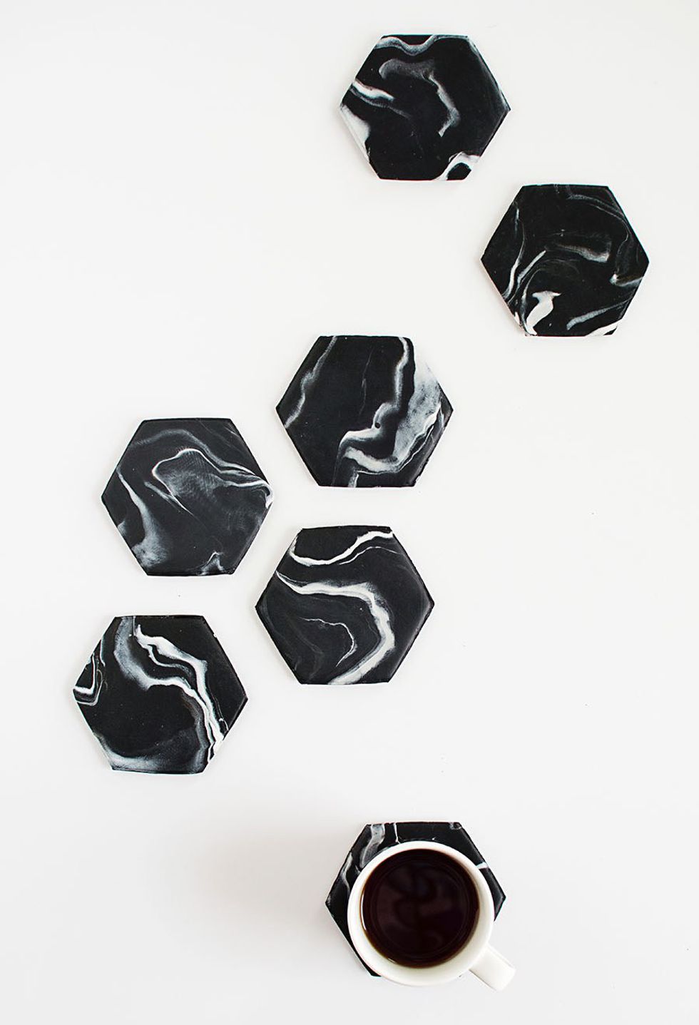 - Marbling black (one block per coaster) and white clay (less than one block total)