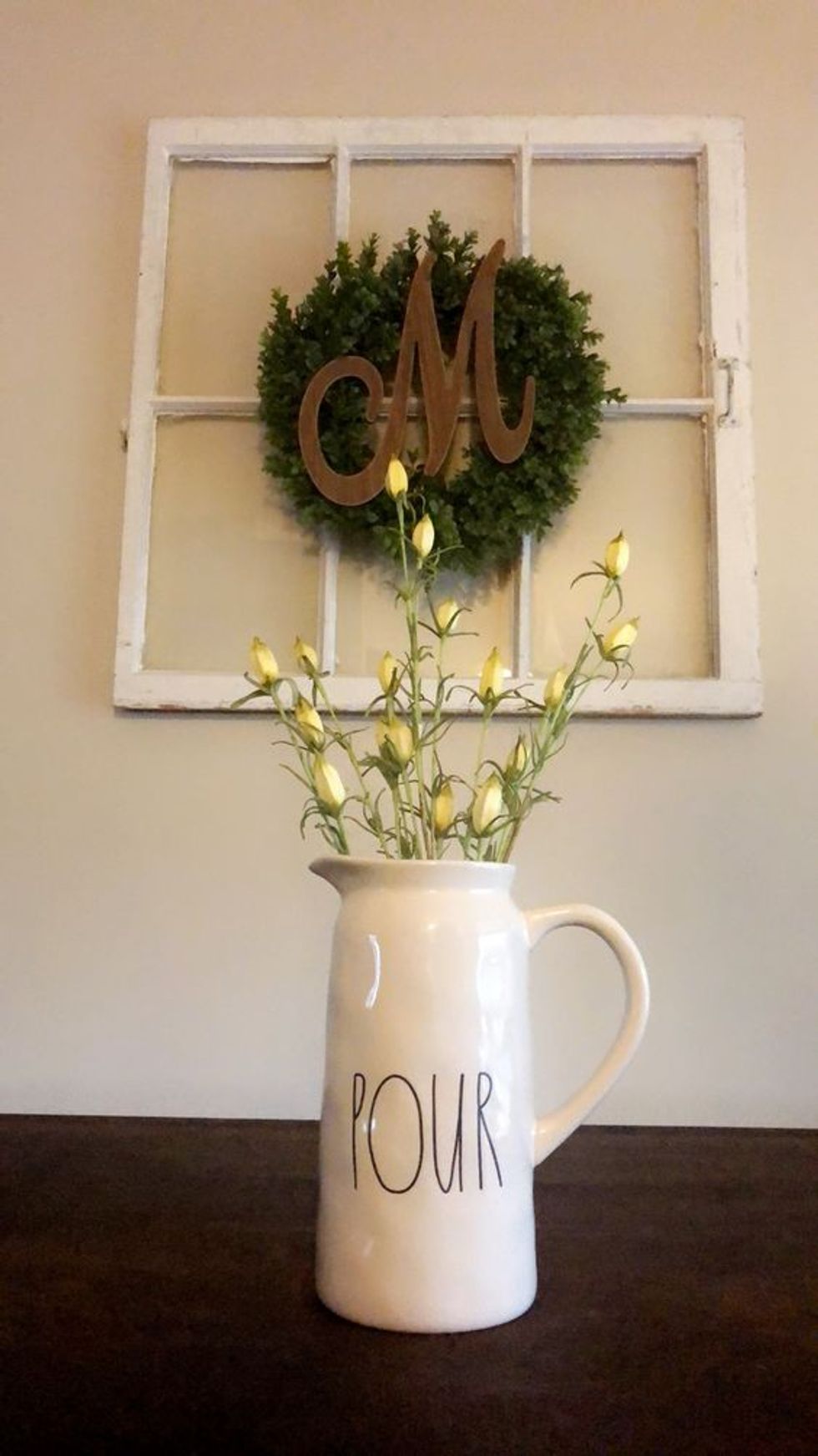Plastic Easter eggs are either tossed in the trash or saved in a cardboard box until next year. Repurpose them into these adorable succulent pots! They're so small that they can be an accent in almost any place in your apartment!4. Farmhouse pitcher centerpiece.