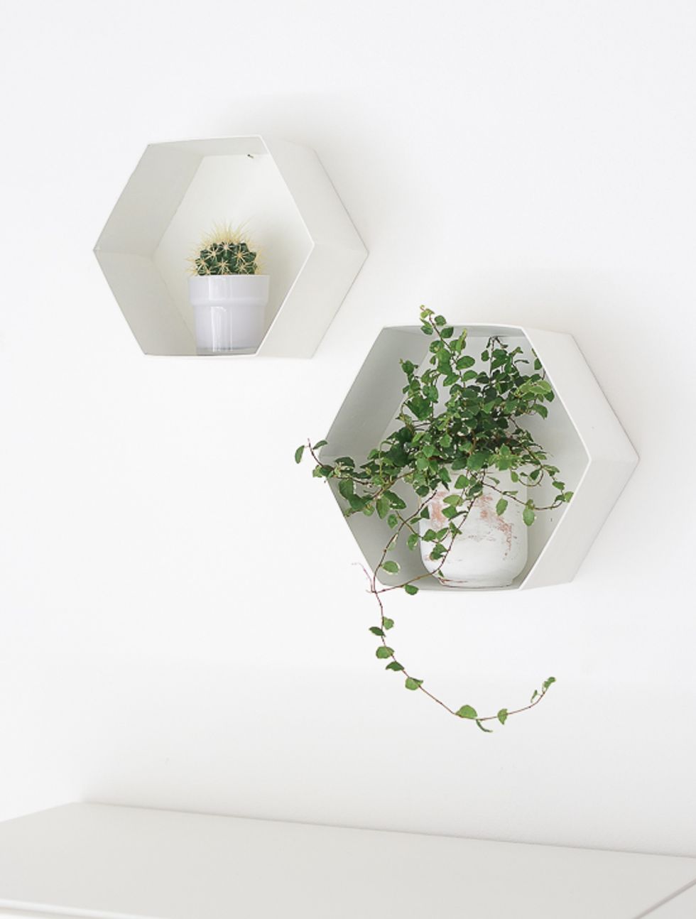 6. Hexagon wall shelves.