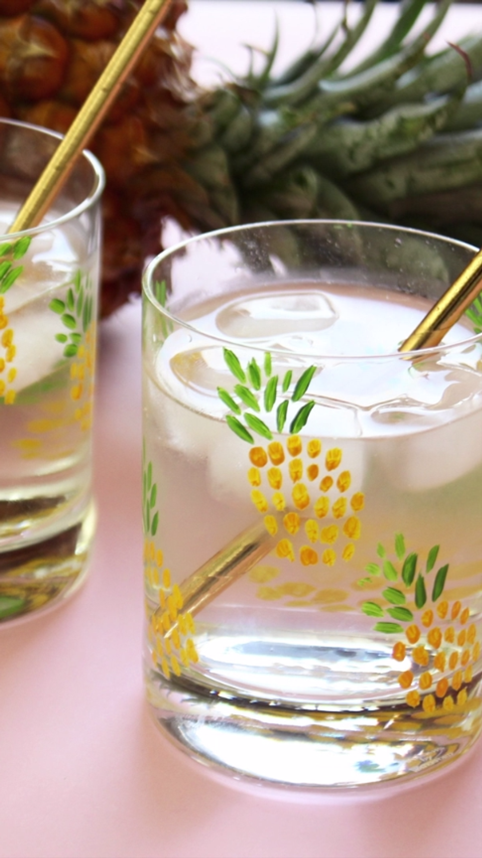 Pineapples are always in for spring and summer. You can apply this design on different styles of glass too, like wine glasses for a summertime girls' night.