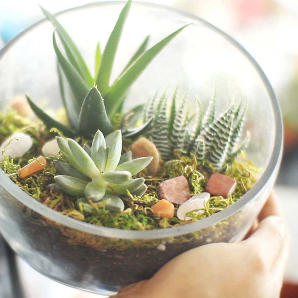 *Water your succulents every other week and be sure to place your terrarium in an area with lots of indirect sunlight.