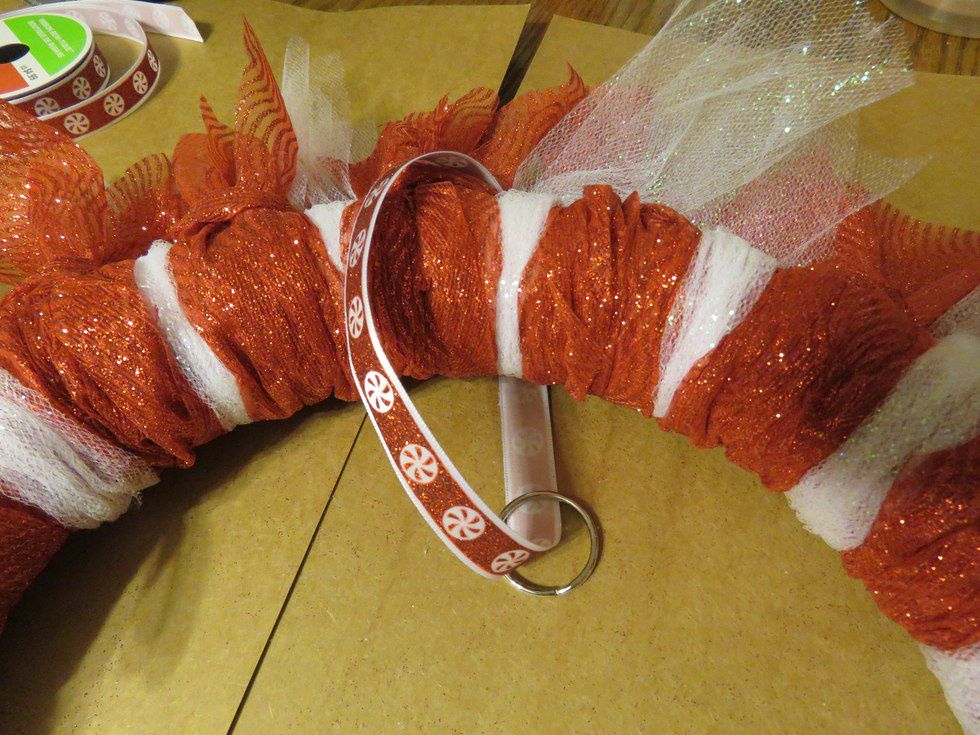 This step is optional, so you can go ahead and skip it if you so desire. If you don't have a wreath hook to hang the wreath up on your door, you can add a fancy ribbon on with a handy-dandy split ring to act as the piece that attaches the wreath to a small hook for hanging. That's what I did.