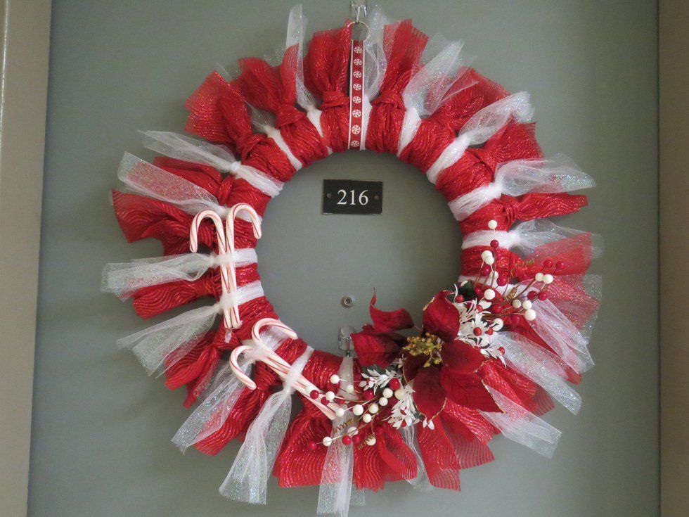 So, perhaps you're hosting a big holiday party or you just want to spice up your front door/dorm door. But, the catch is that you don't have a lot of money to spend on a pre-made decoration. Well, you are in luck because I'm here to tell you how to create a DIY (that would be "do it yourself") wreath made out of simply tulle fabric, a Styrofoam ring, and some fake flowers. It's really easy and if you somehow get lost on the way with these directions, you could probably just figure it out on your own, really.