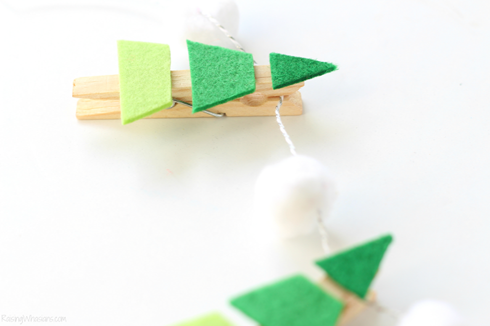 This is so simple and easily enhances any room. Get normal twinkly lights, little clothespins, and green fabric. Simply cut the fabric in the shape of trees, glue them onto clothes pins and clip those on the fairy lights. That's it! So simple and so cute.