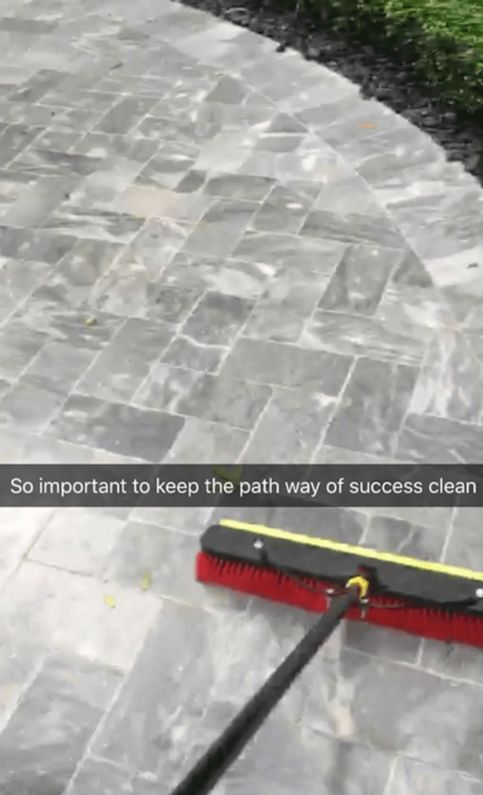 After breakfast, it's time to get outside. He makes sure to keep the metaphorical pathway of success clean too.