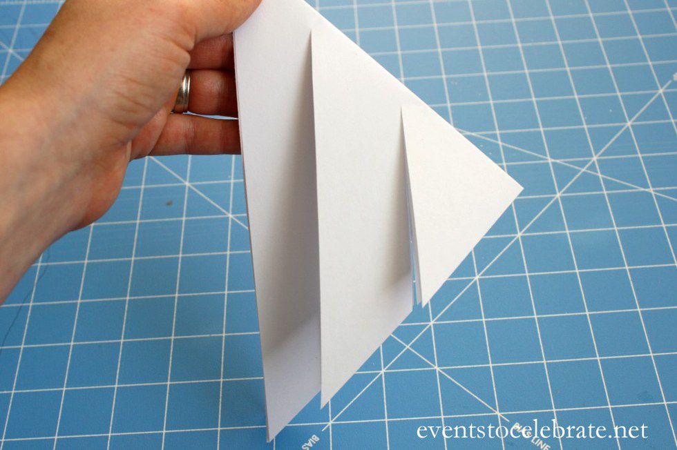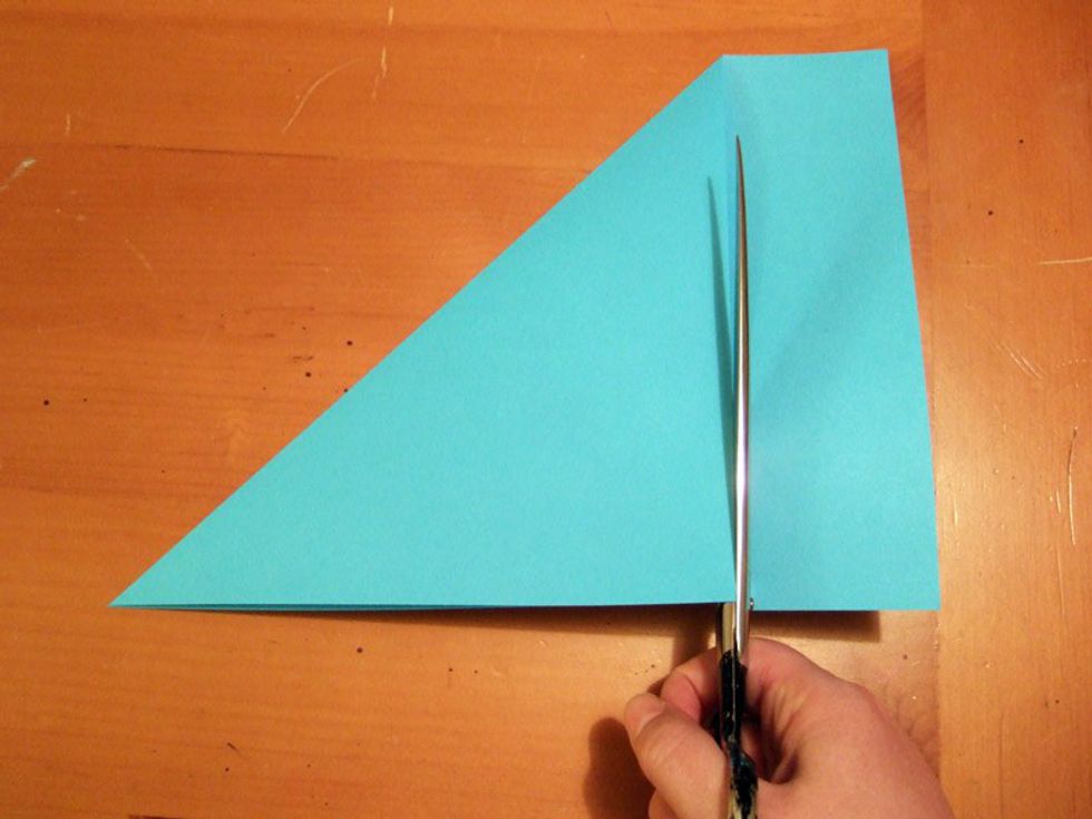 Use scissors to cut from the side with the double folds toward the single fold of the triangle. Be sure to end your cut about 1/4″ from the edge. Repeat with each of the 5 remaining pieces.