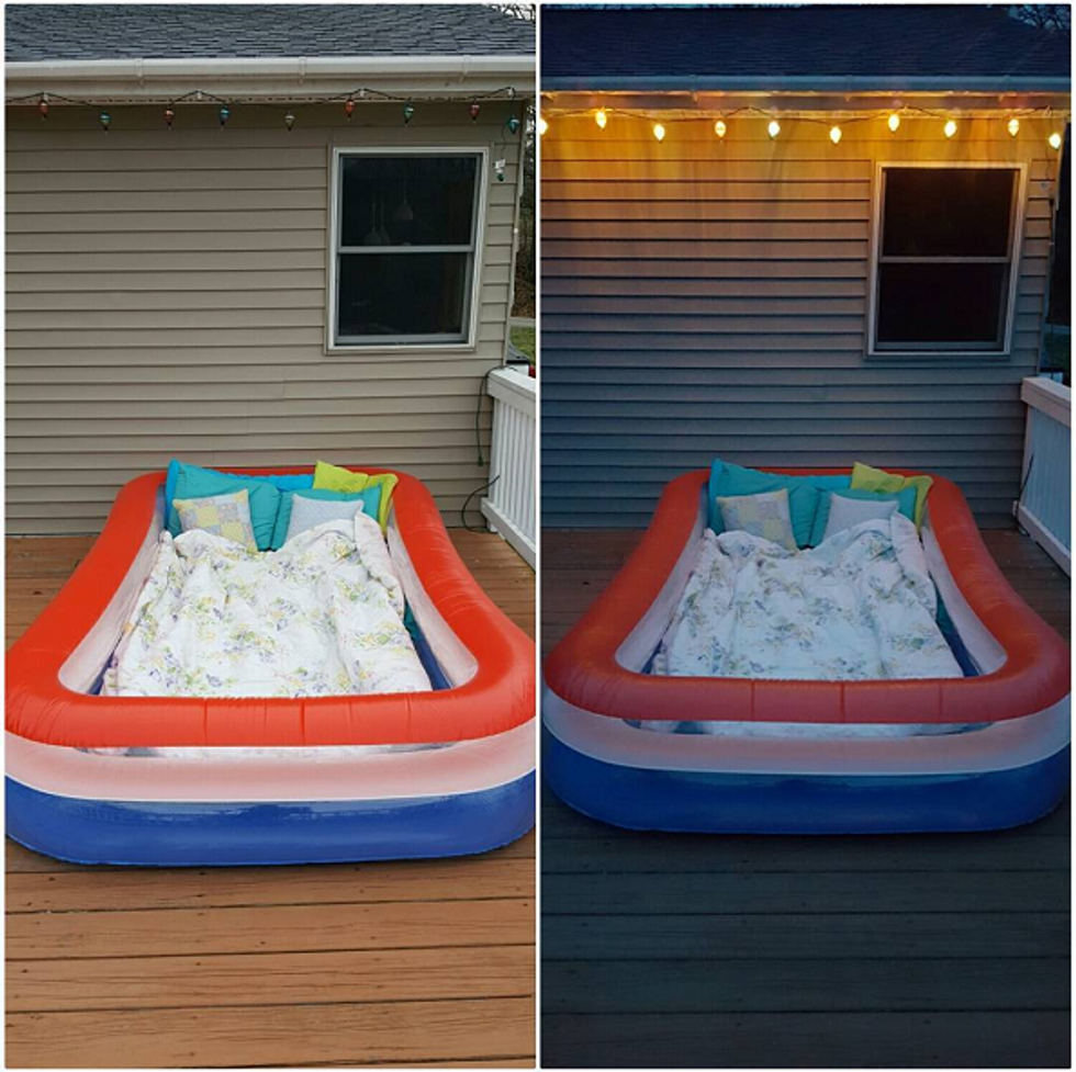 Got a kiddie pool and some pillows? Load up a mini kiddie pool and blow it up, and then fill it with cozy blankets and hop in the pool. Lay back, look at the stars, and just relax. It's that simple.
