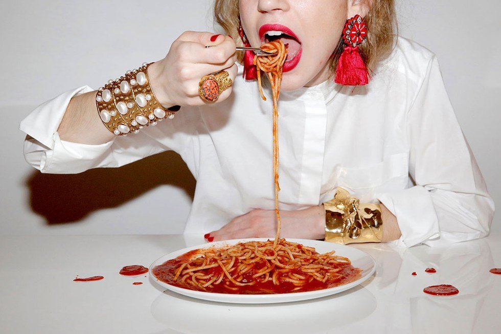 She held her glass in the air and shouted,"To being single!" The audience's eyes were gaping, mouths at a loss for words, but she just sat down and started eating her spaghetti, not caring that the sauce was dripping onto her long, white dress.