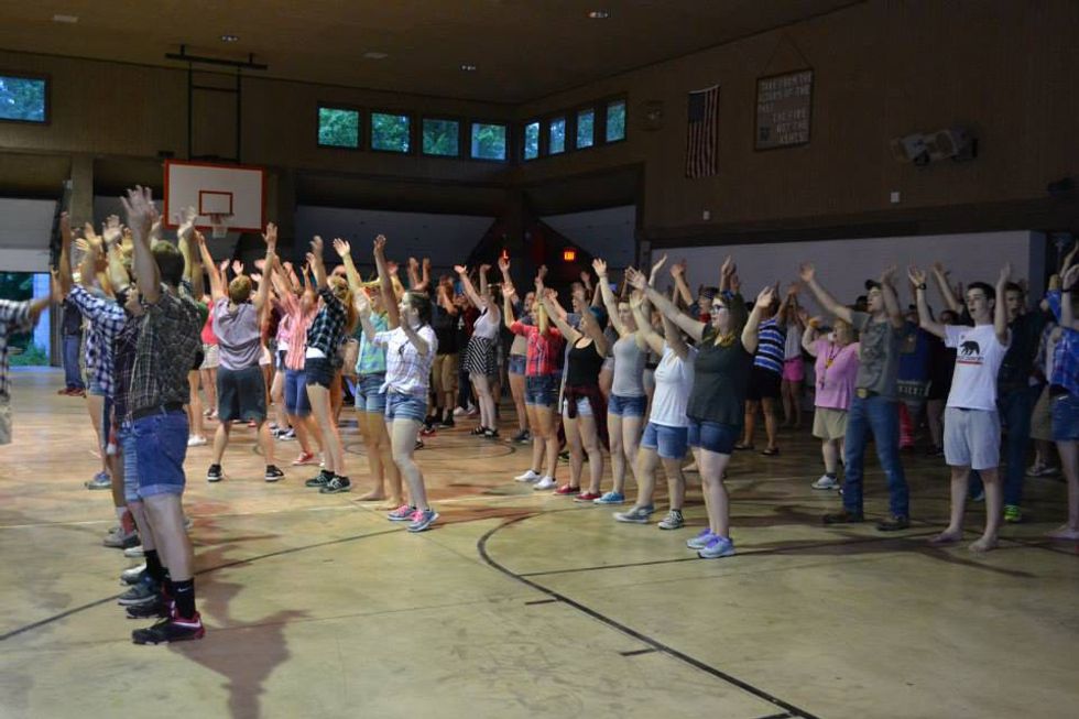 Next, we get to the moment of truth. The Mickey Mouse March begins to play and two lines are formed. Campers pair up at one end and march down the center in front of everybody. Campers learn some partner dances. This is more of the hoedown style. We start with the Heel-Toe Polka. You have not witnessed pure chaos until you see 150 people all slide at once in a gigantic circle; especially when some of them forget which way is left. Though some toes may be stepped on, all is ultimately okay and everyone has a great time. A few more partner and line dances play and everyone leaves sweaty and tired. A mad dash for the showers ensues.