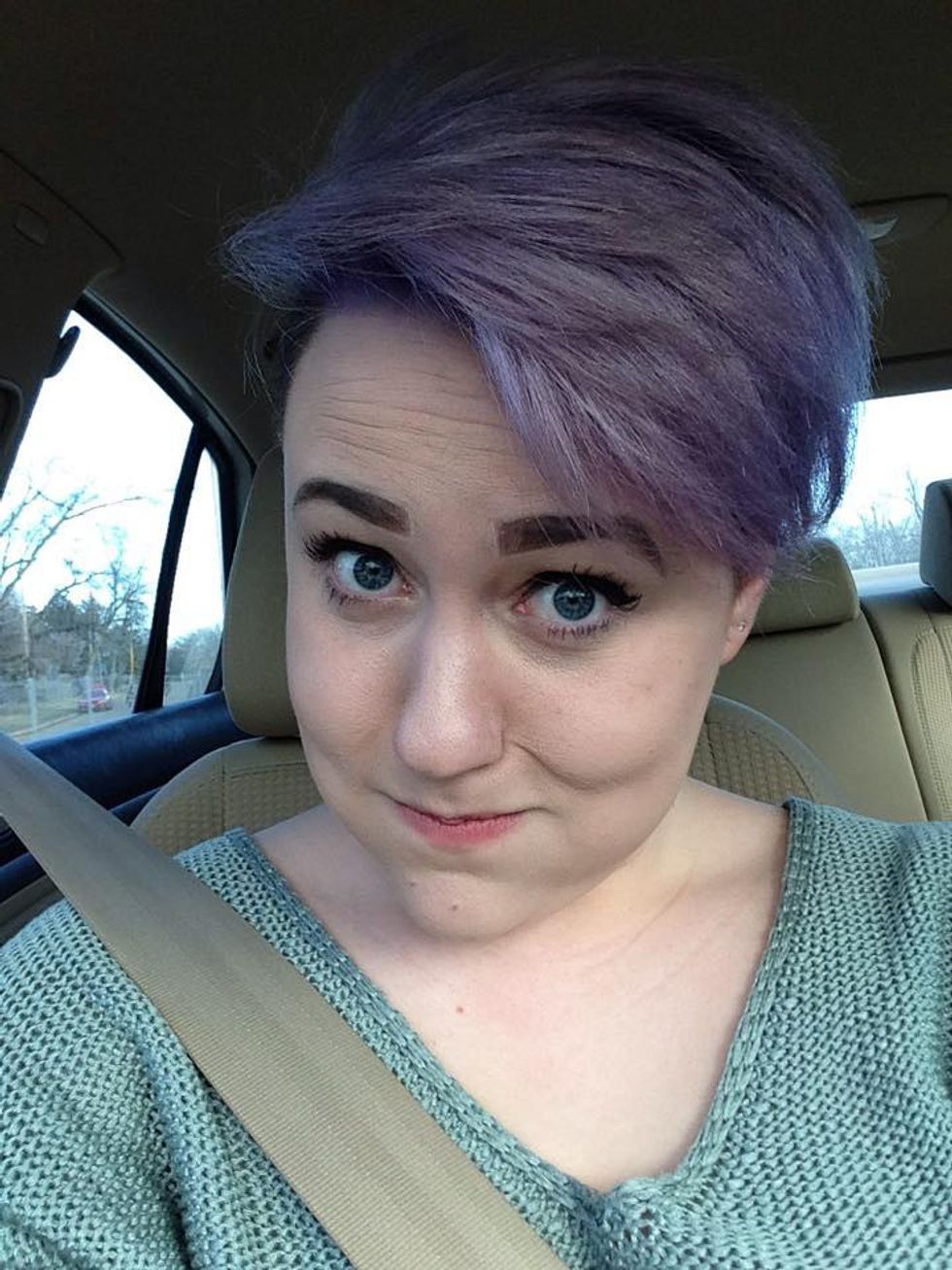 I had never felt so free, I didn’t have any hair touching my neck! I was so happy, and I felt pretty with it. I didn’t look like I had a small head compared to my body like all those beauty articles warned me I’d have! I was amazed at my new shower time compared to when I had my hair long. Aside from my feelings of joy, though, I was so upset with myself for not allowing myself to have something like this sooner. My carefree hair outlook got me thinking that I could do anything I wanted with myself, I didn’t care about what people thought was “slimming.” So I dyed my hair purple because I liked the color.