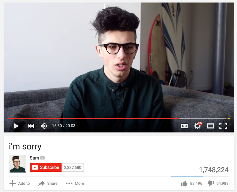 The irony is that he will continue to profit off of his mistakes. His video has over 66,000 dislikes, but who knows how much those 1.7 million views earned him. Since posting his apology video, he has posted 3 addition vlog-style videos, each resting with views in the hundreds of thousands and a considerable dislike count.